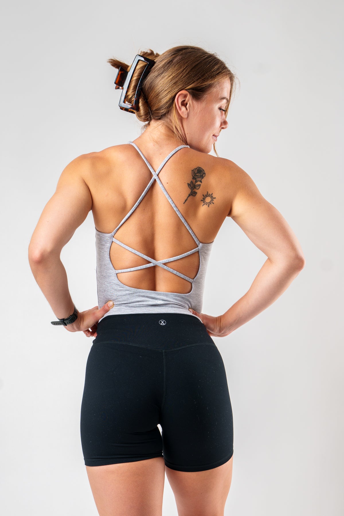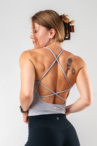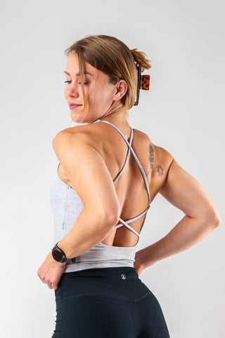 A new style for your collection.The India Top is cropped and feminine, featuring an elegant rounded neckline that flows into slim straps. The crossed back adds a trendy touch and extra flair – stylish from front to back.